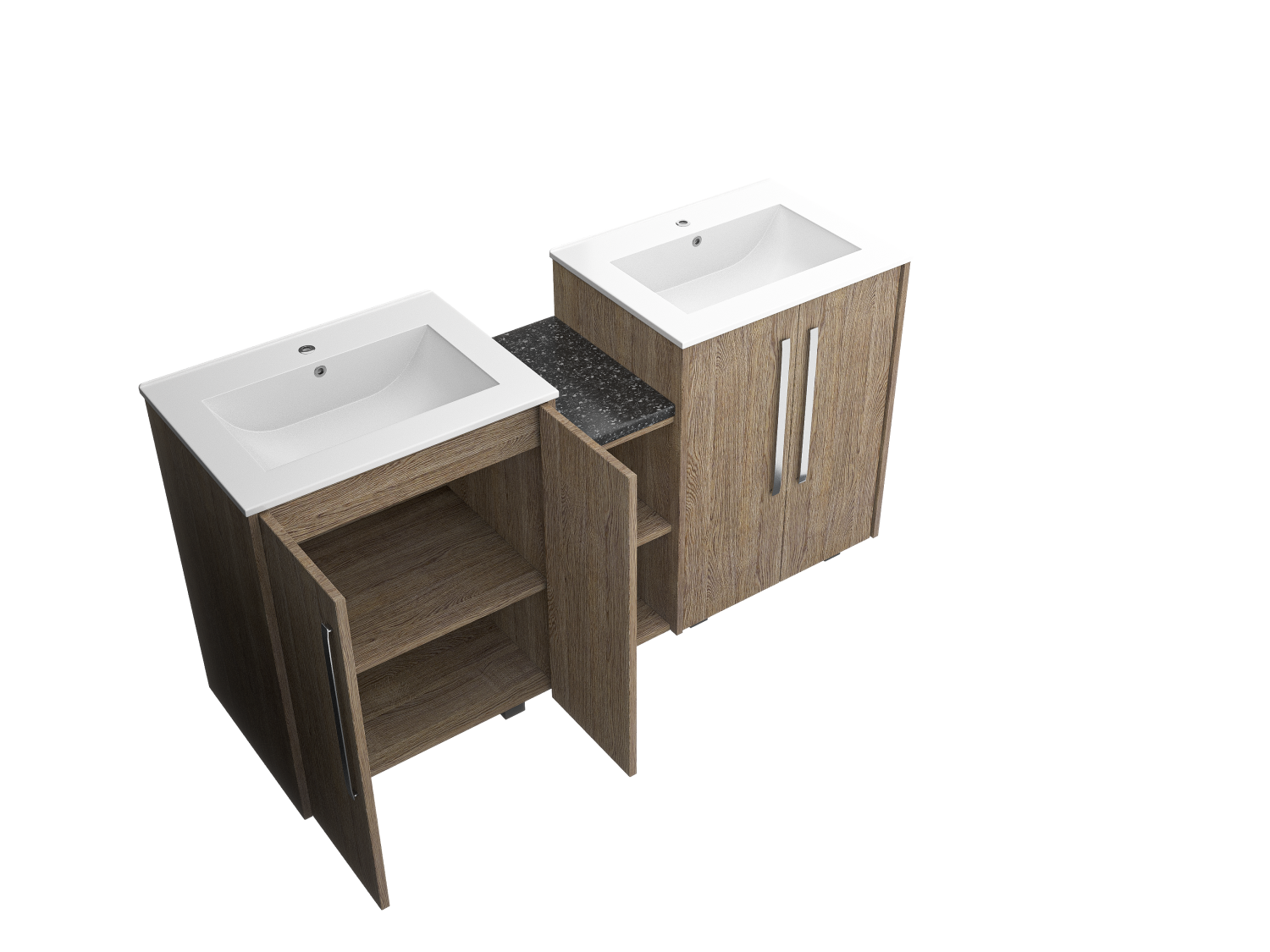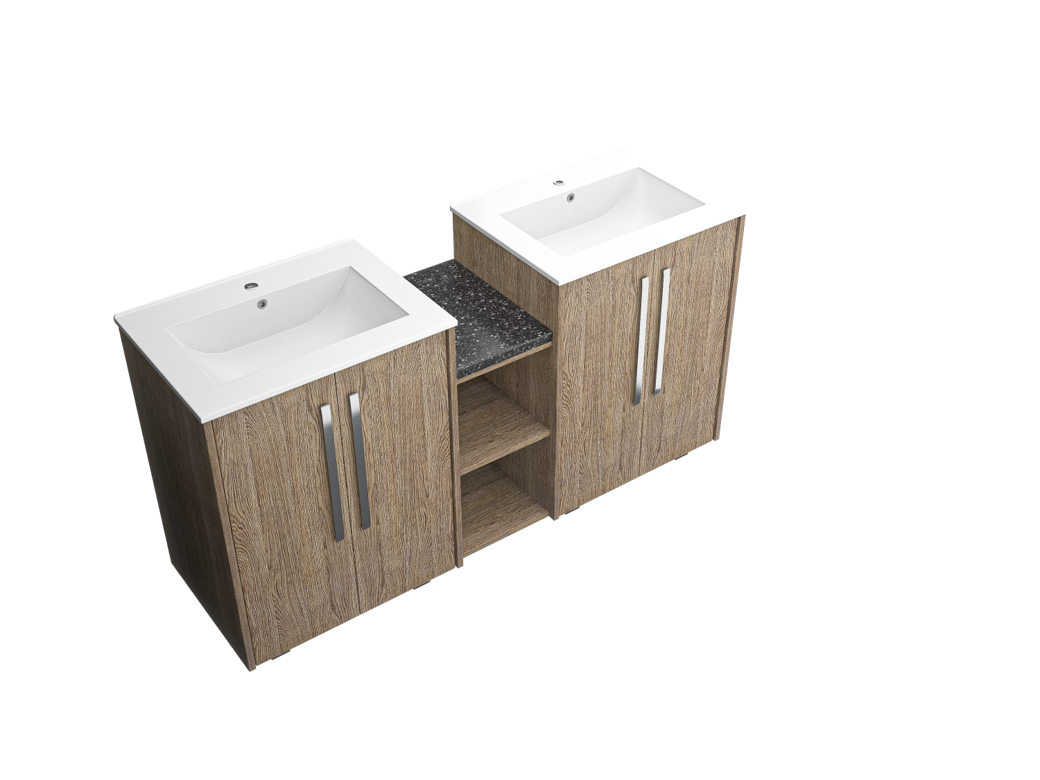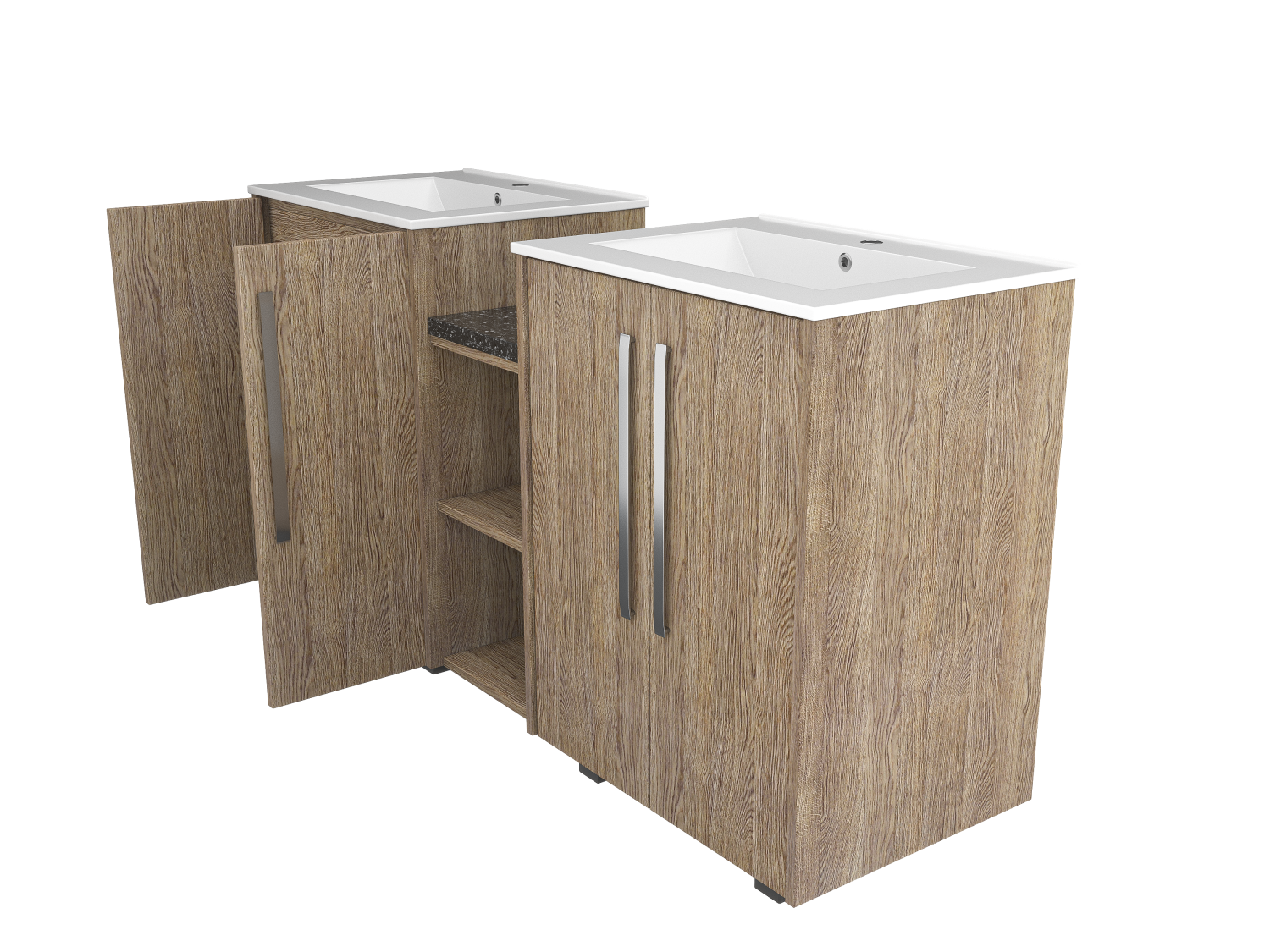 Enhance your bathroom with a freestanding double sink featuring a durable wood facade and double doors for extra storage. Timeless elegance meets functionality.