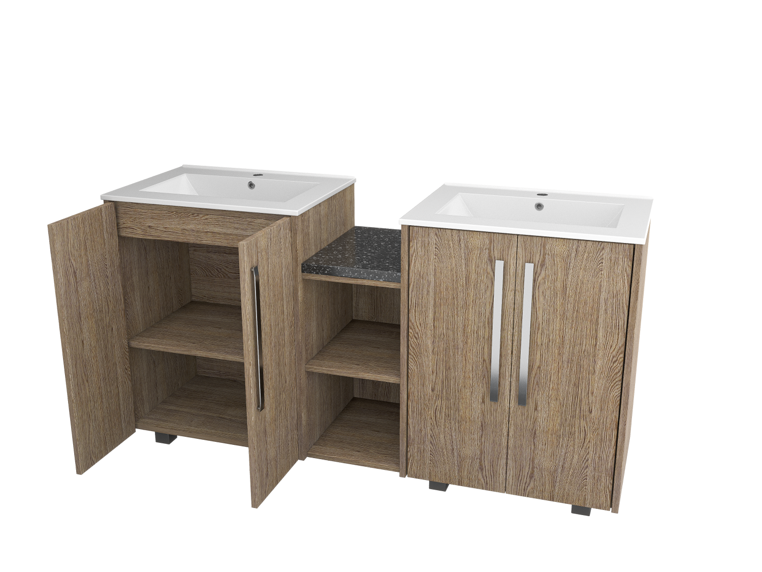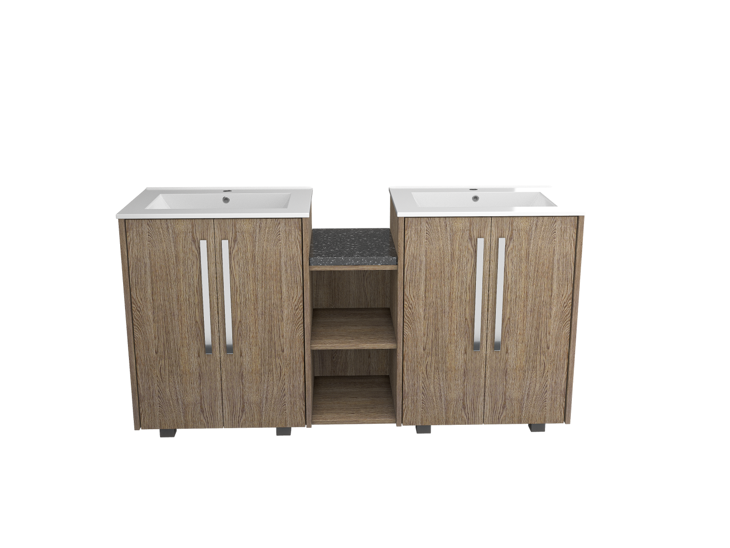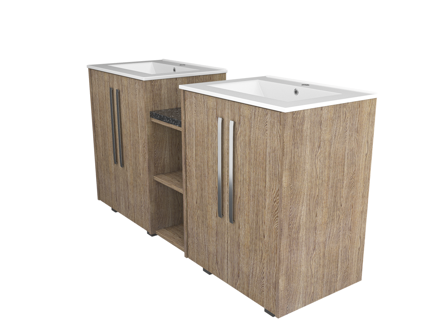 Enhance your bathroom with a freestanding double sink featuring a durable wood facade and double doors for extra storage. Timeless elegance meets functionality.