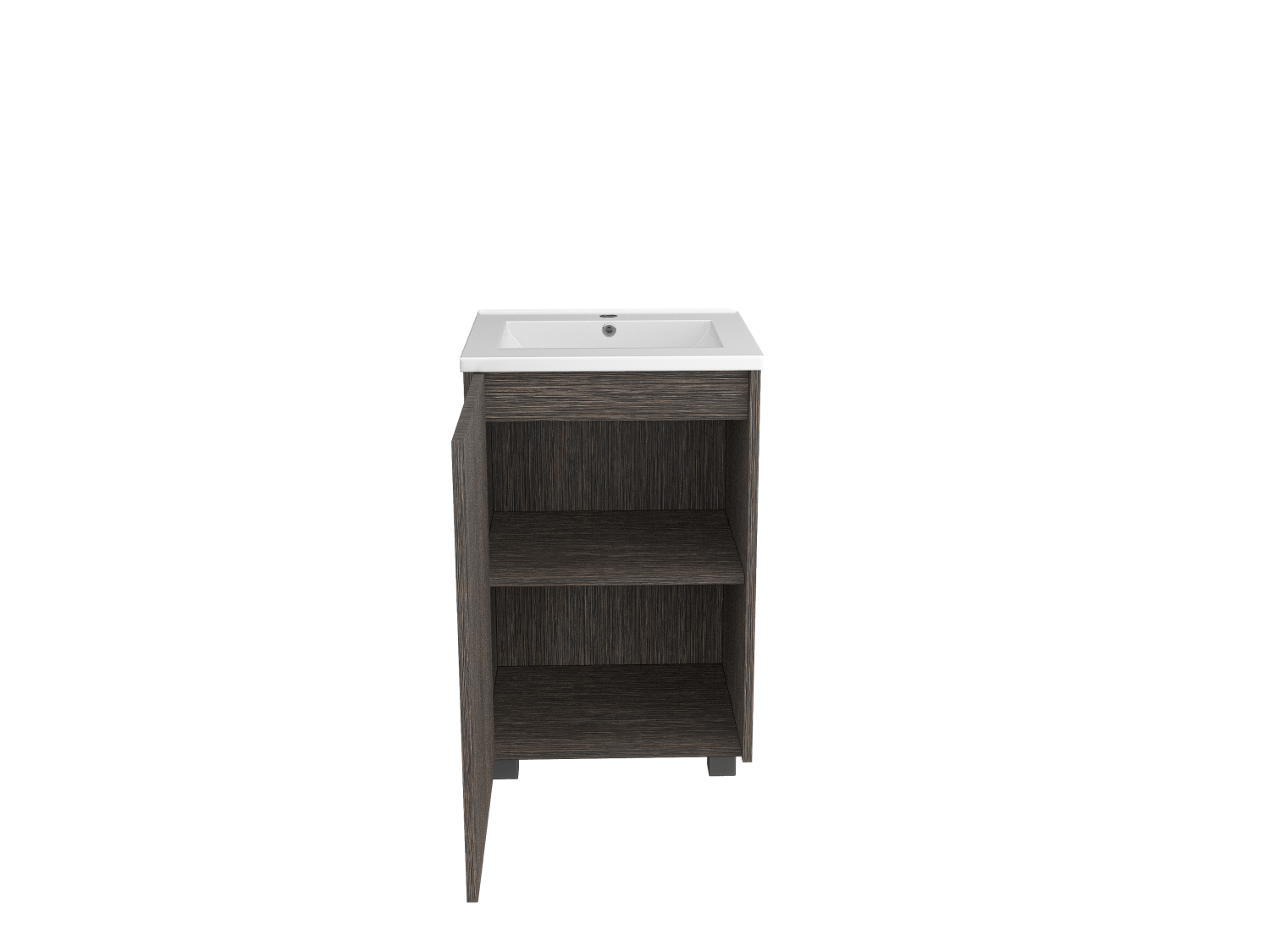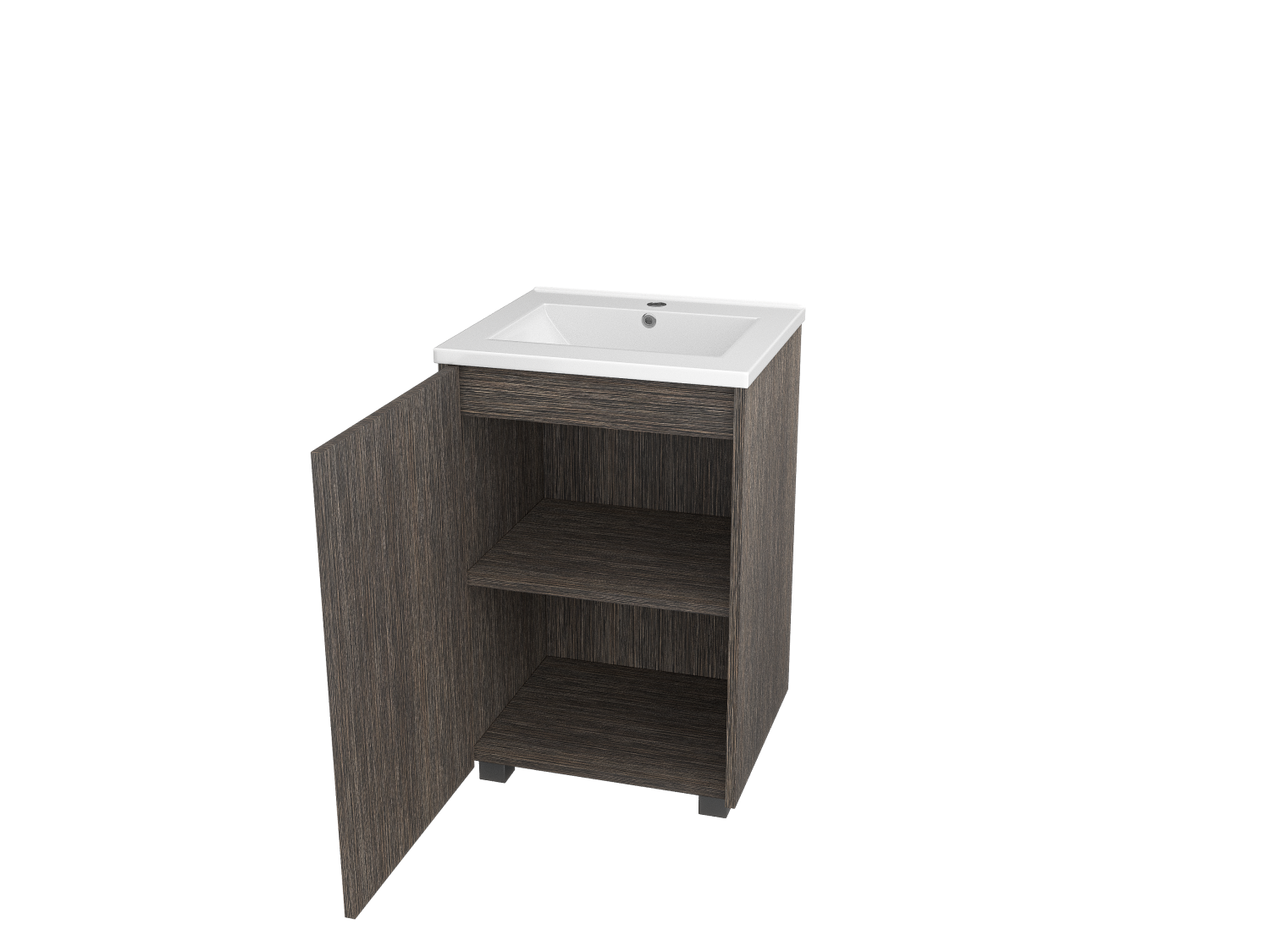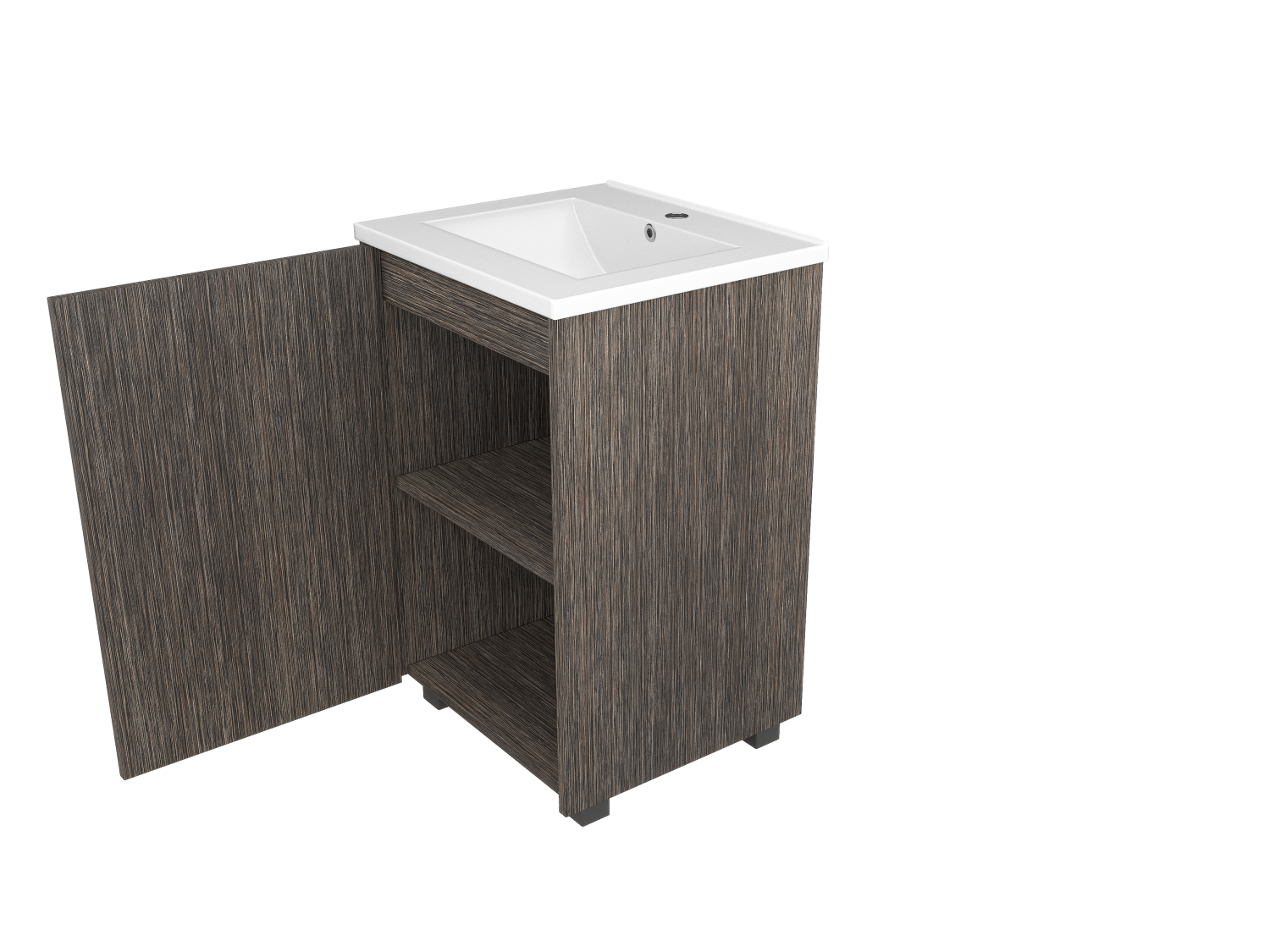 A modern freestanding sink with a single-door wood facade, designed for both style and convenience in contemporary bathroom interiors.